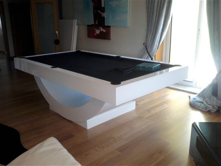 Bilhar lacado em cinzento claro e tabela em madeira, pode ser fabricado noutros materiais ( ver acabamentos)